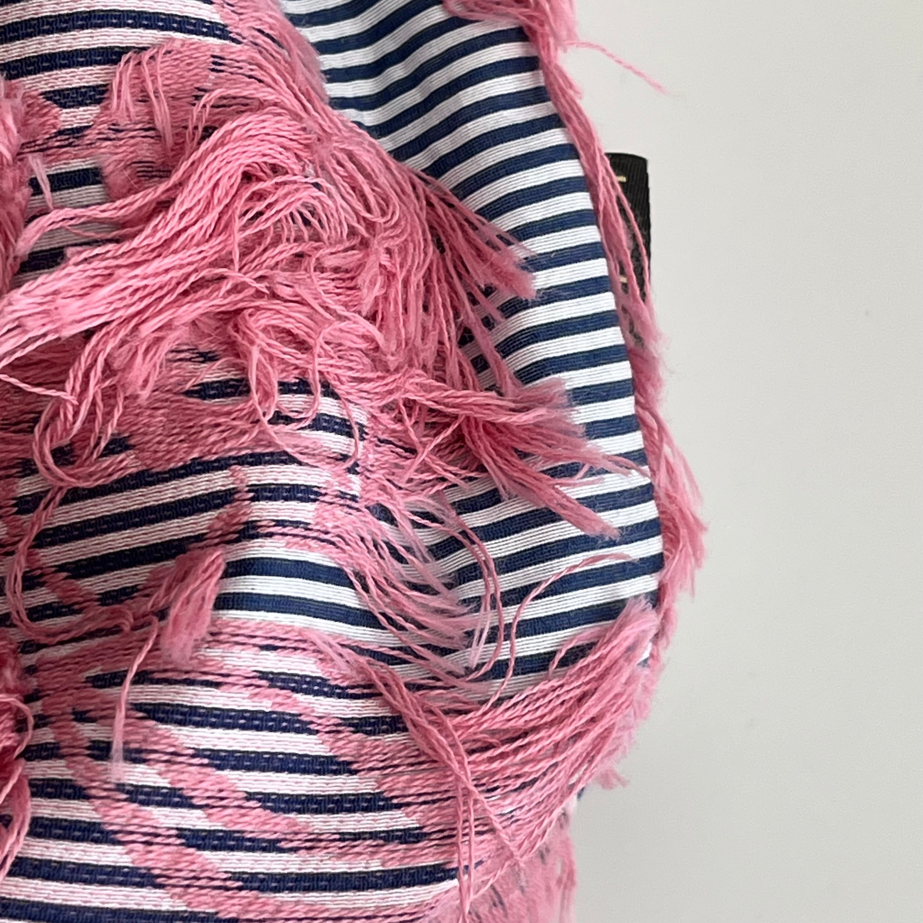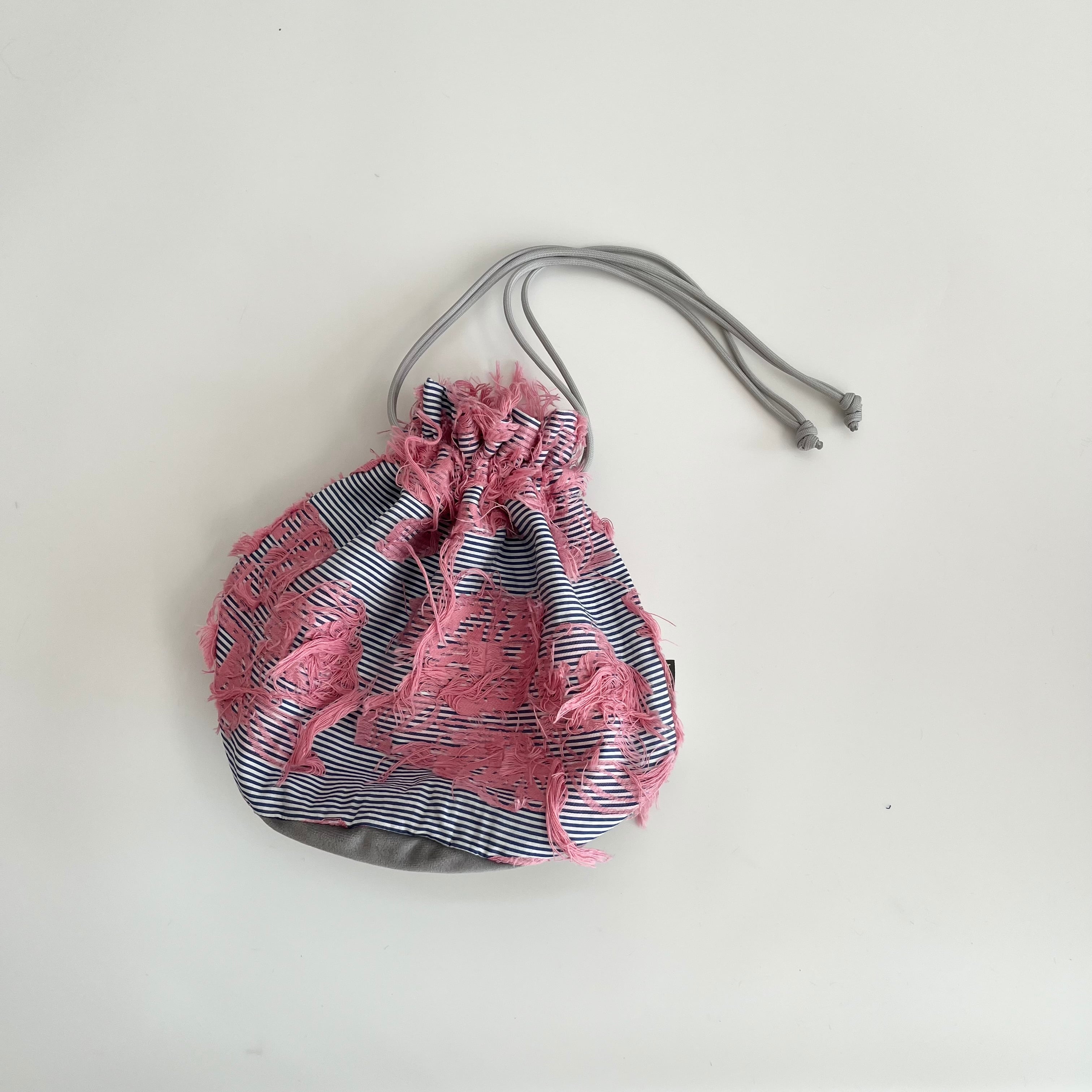 ジャガード巾着ショルダー ボーダー×サーモンピンク