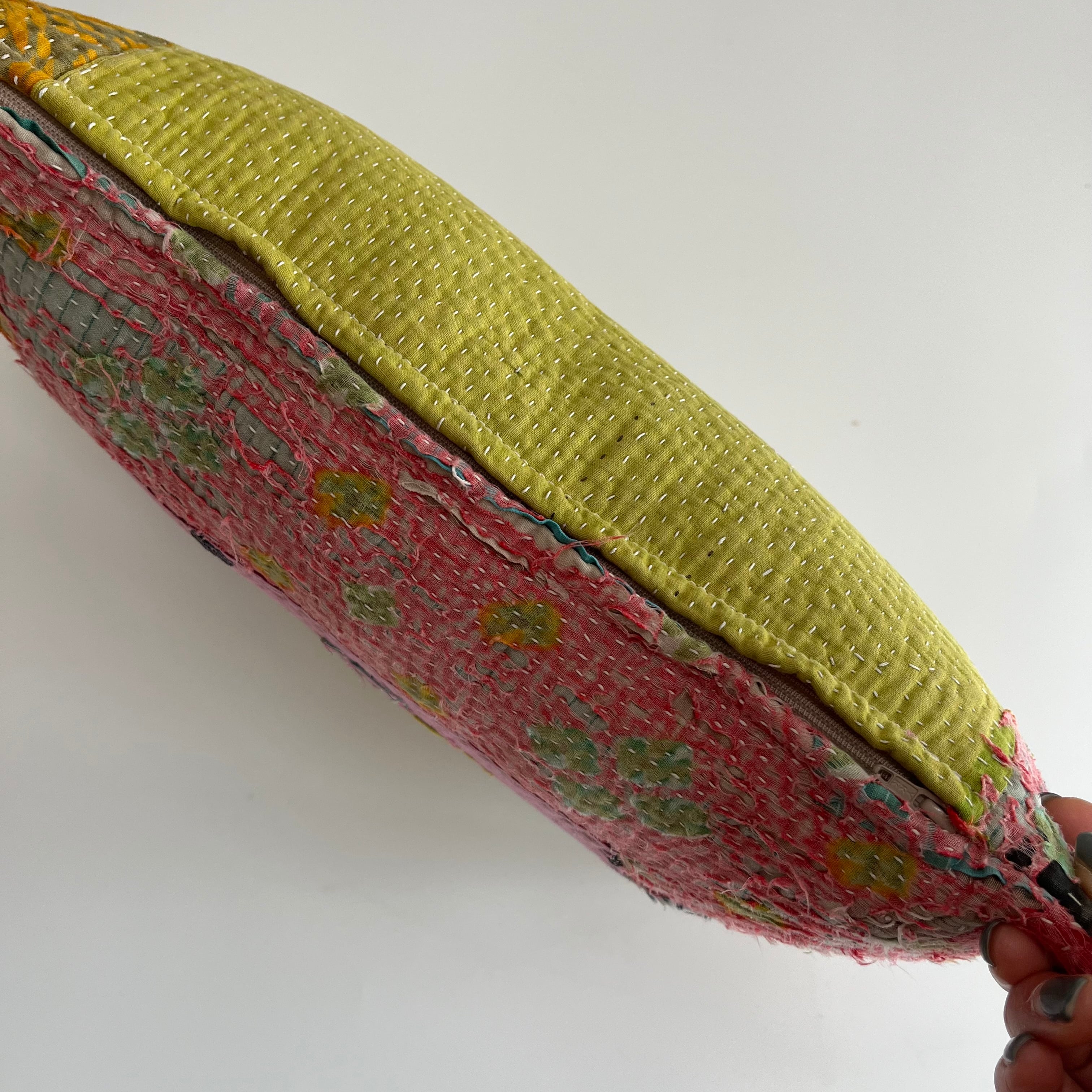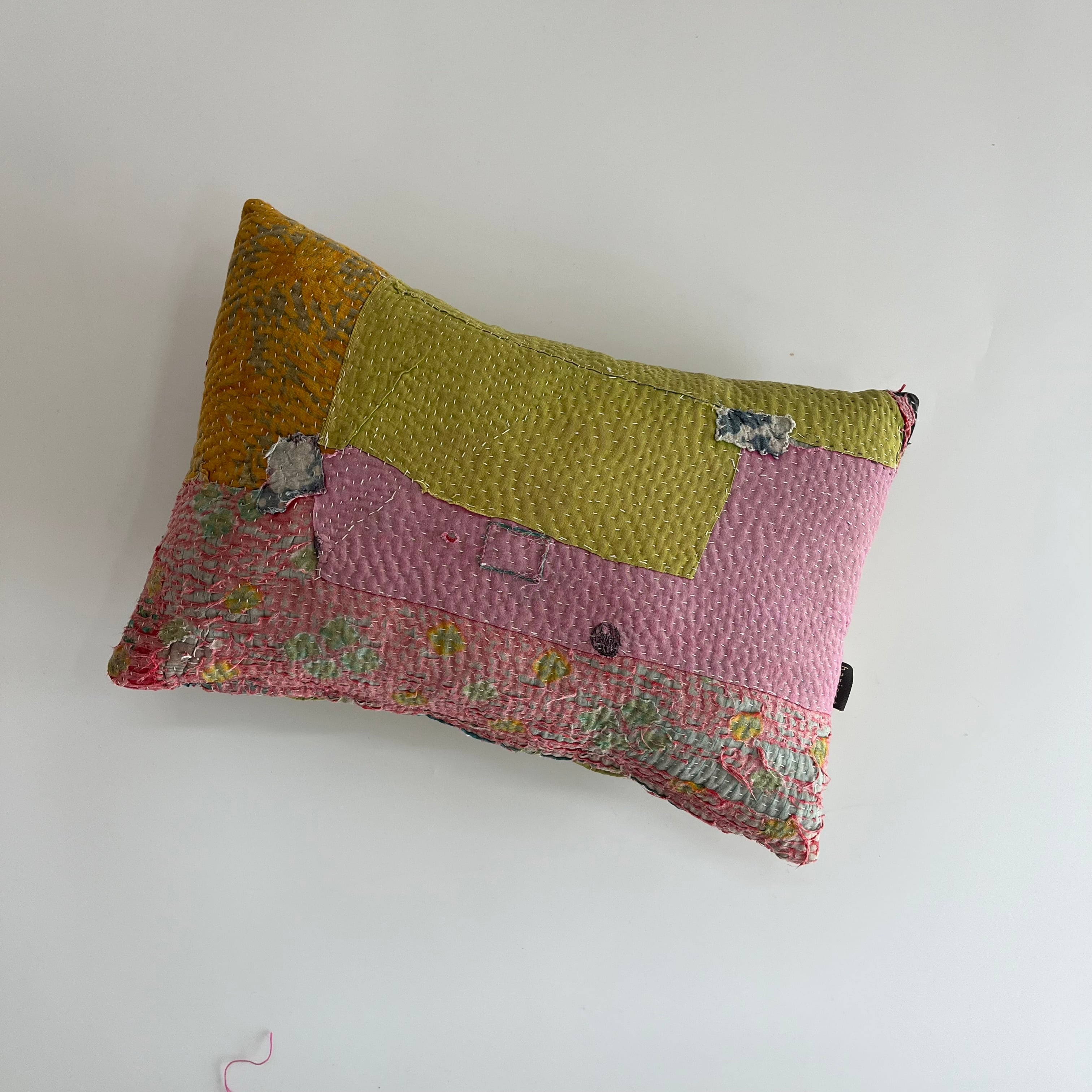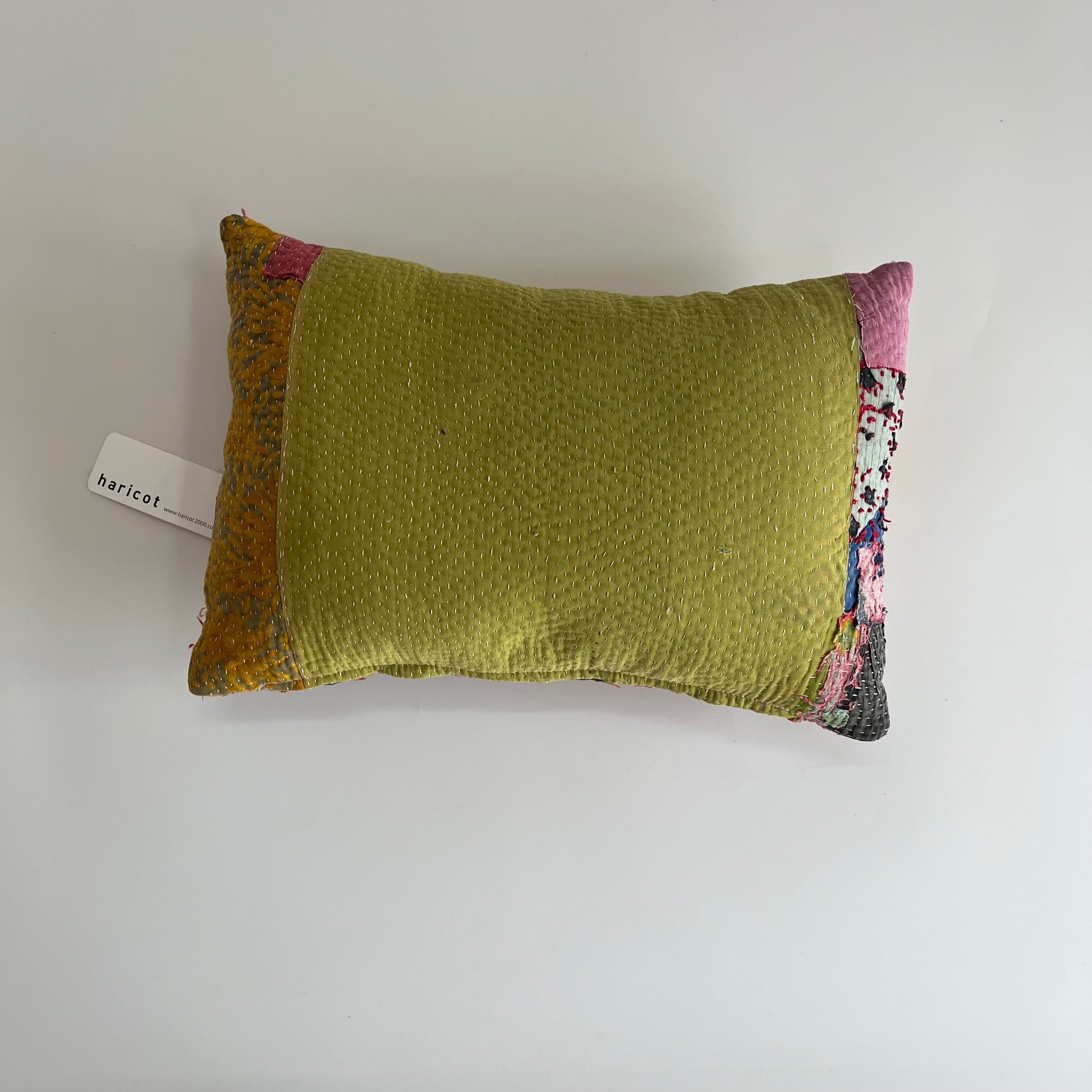 インドで買い付けたヴィンテージラリーキルトをアトリエでクッションに仕立てました。