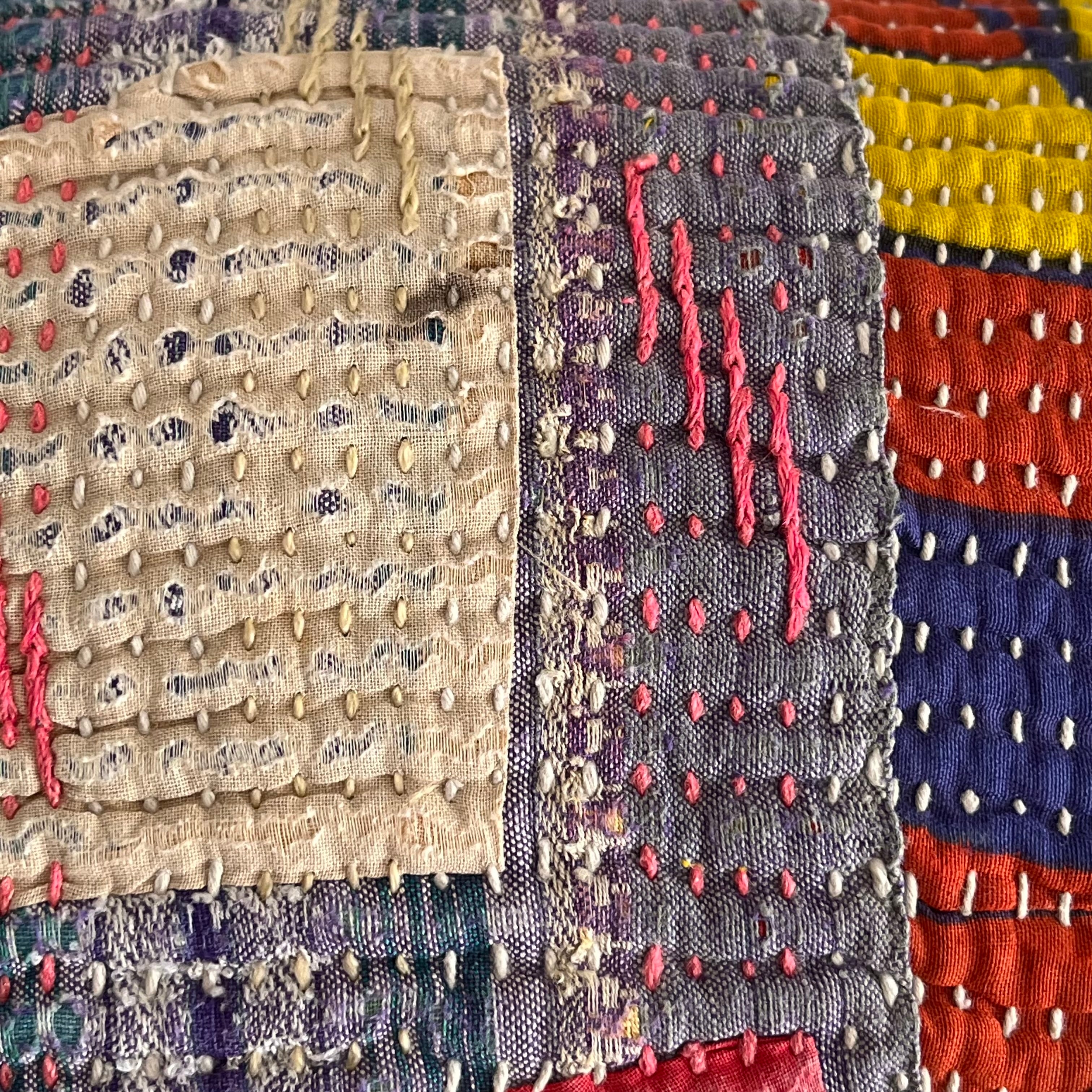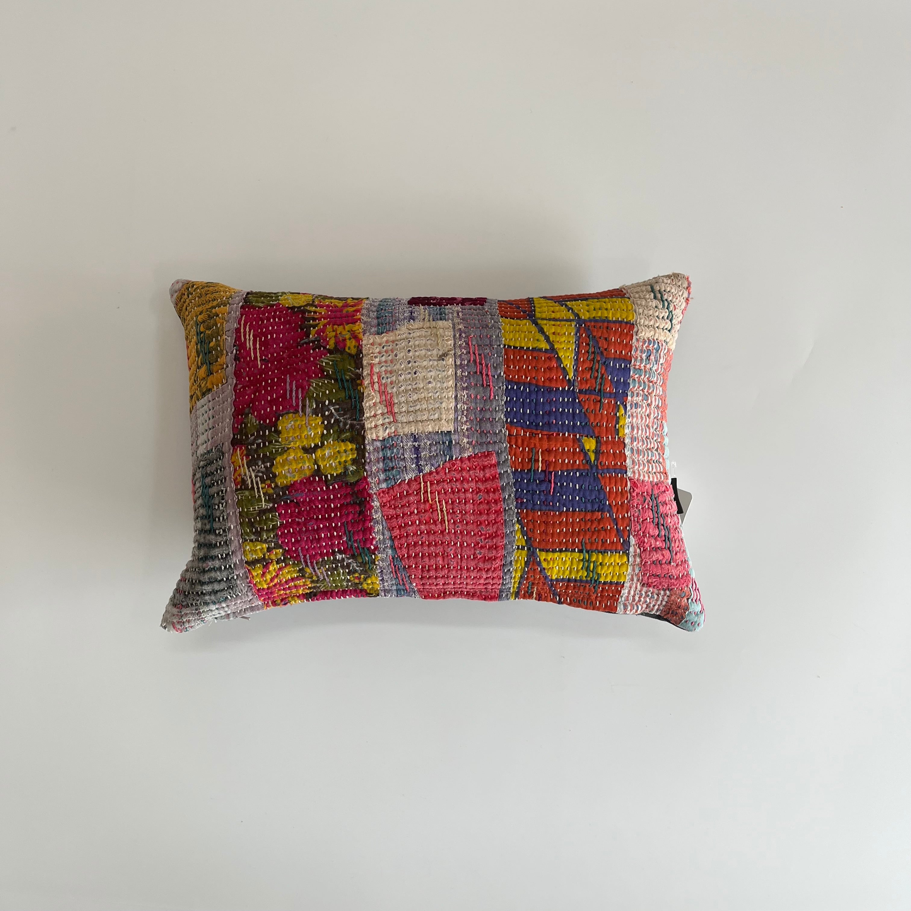 インドで買い付けたヴィンテージラリーキルトをアトリエでクッションに仕立てました。