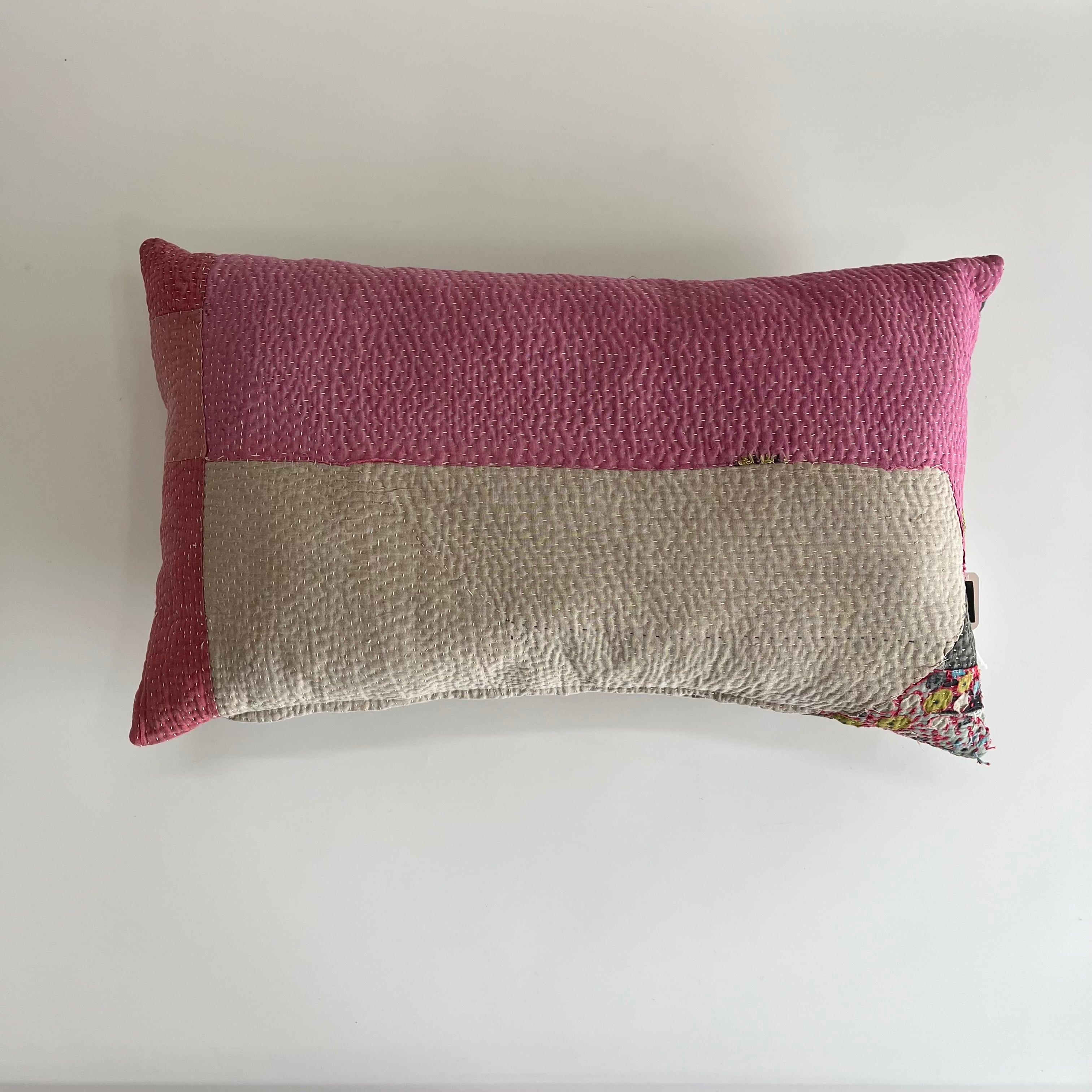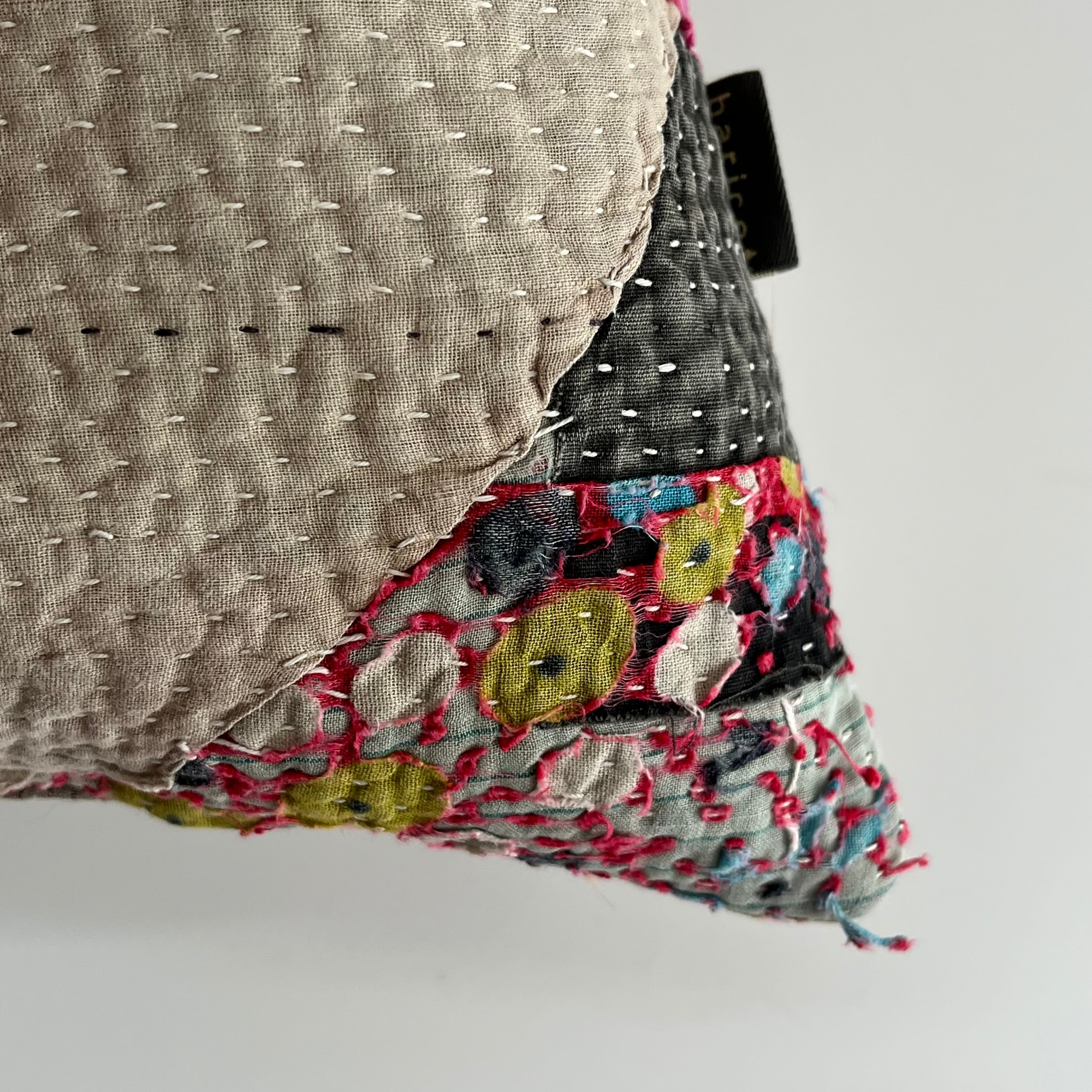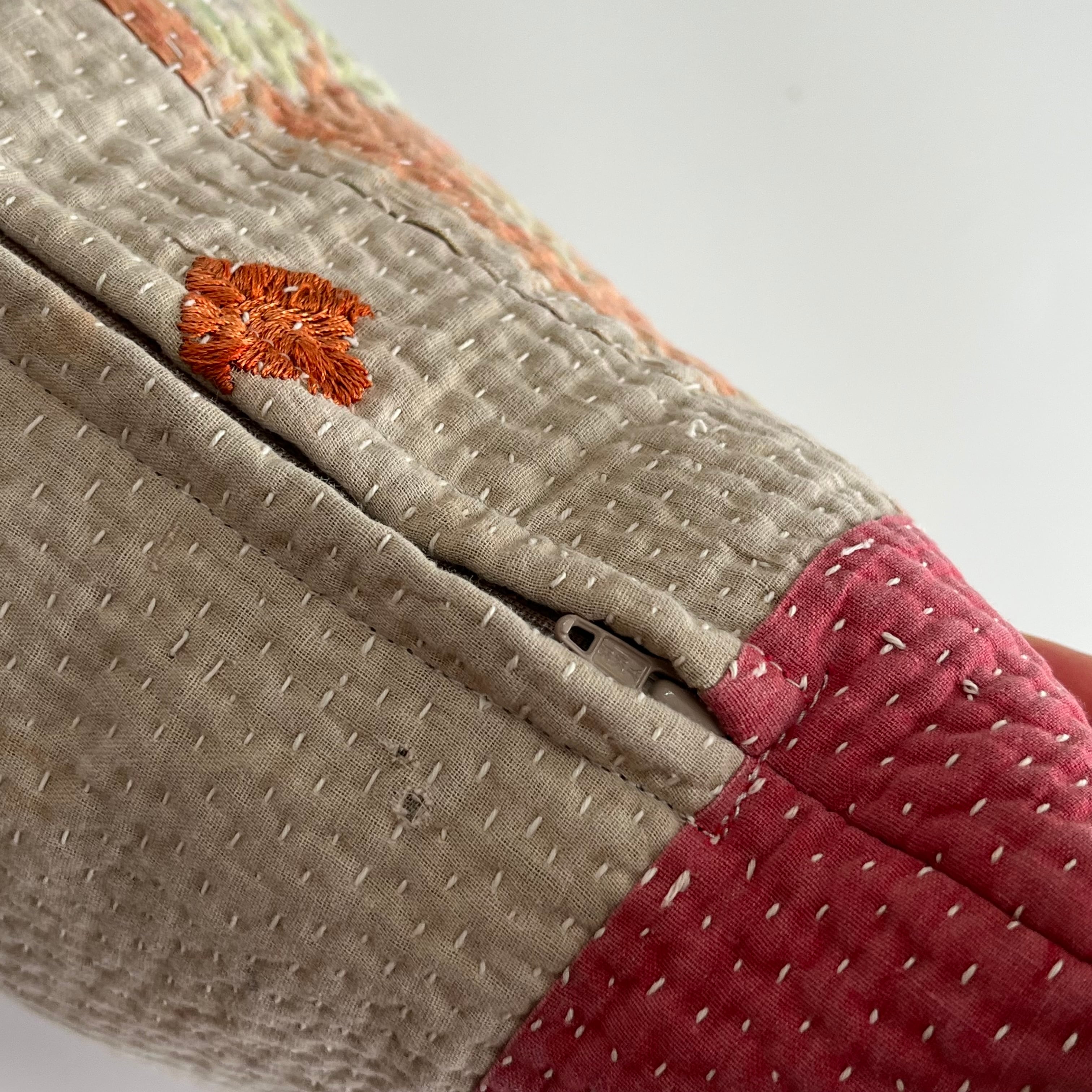 インドで買い付けたヴィンテージラリーキルトをアトリエでクッションに仕立てました。
