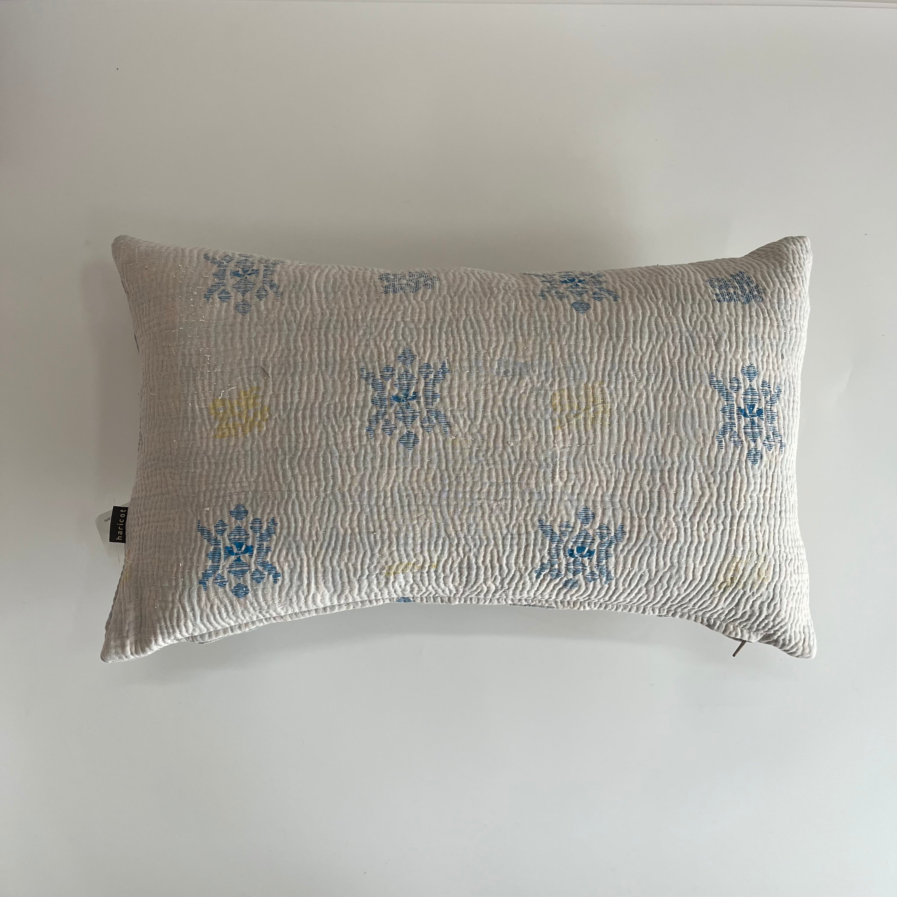 インドで買い付けたヴィンテージラリーキルトをアトリエでクッションに仕立てました。