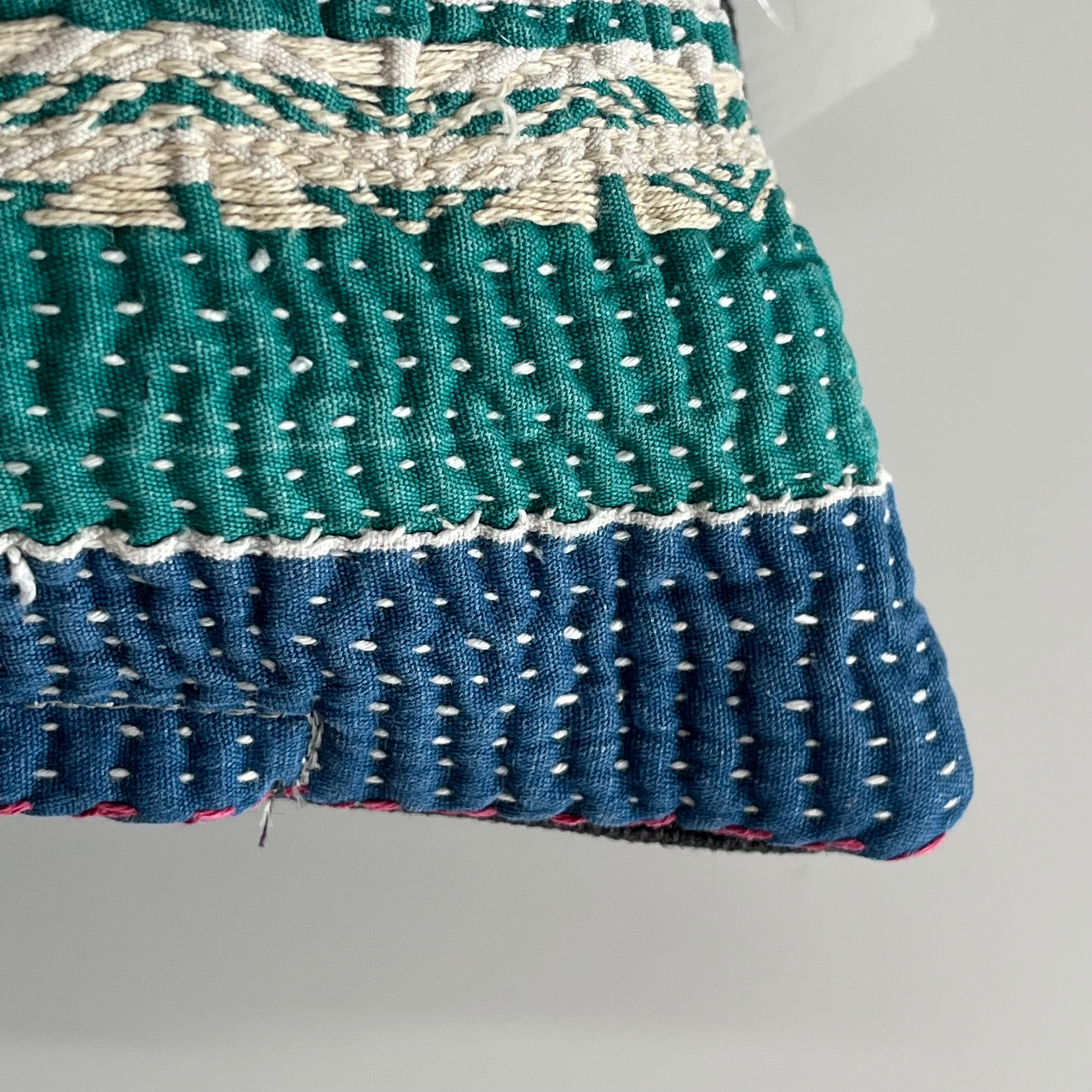 インドで買い付けたヴィンテージラリーキルトをアトリエでクッションに仕立てました。