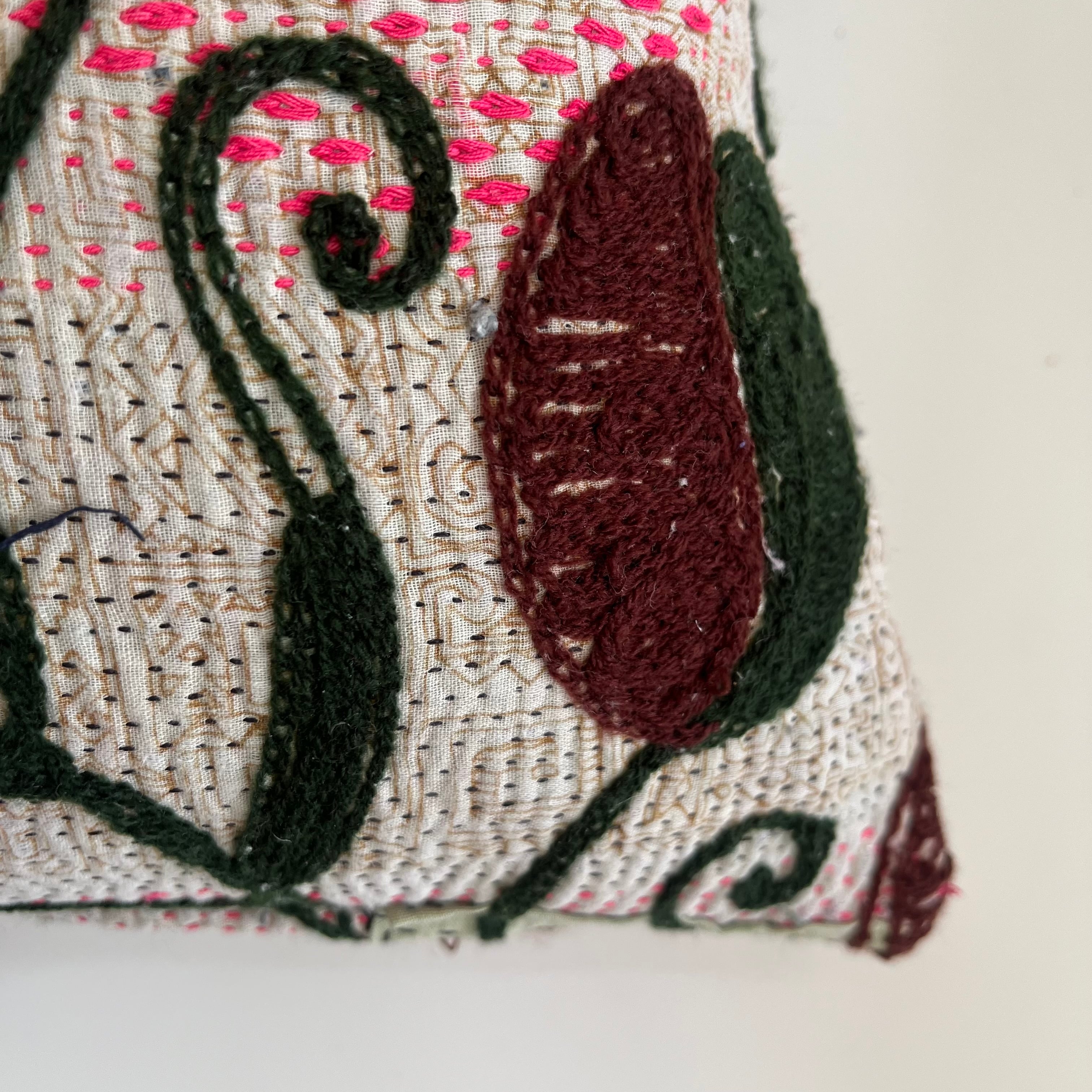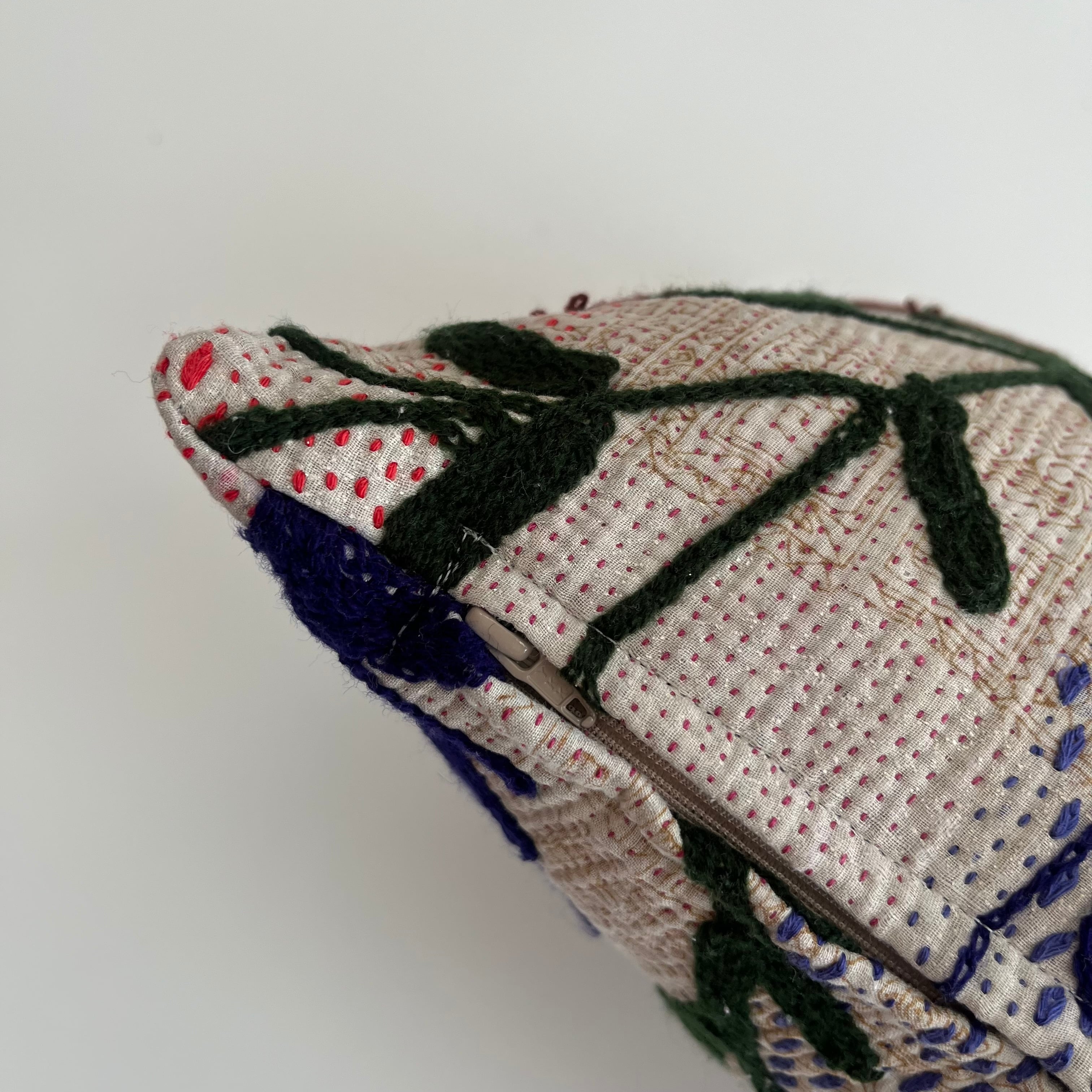 インドで買い付けたヴィンテージカンタにスザニ刺繍を施した生地です。