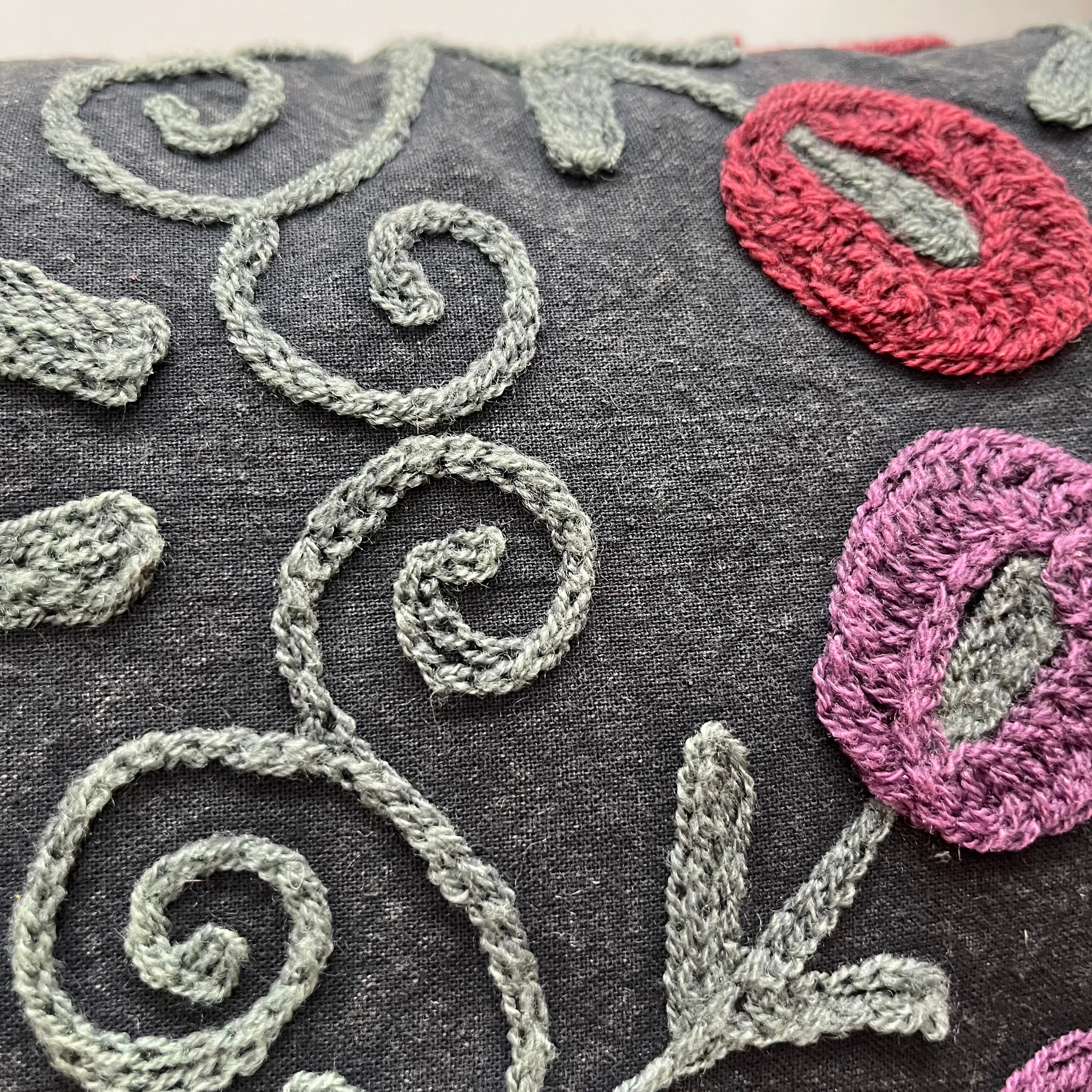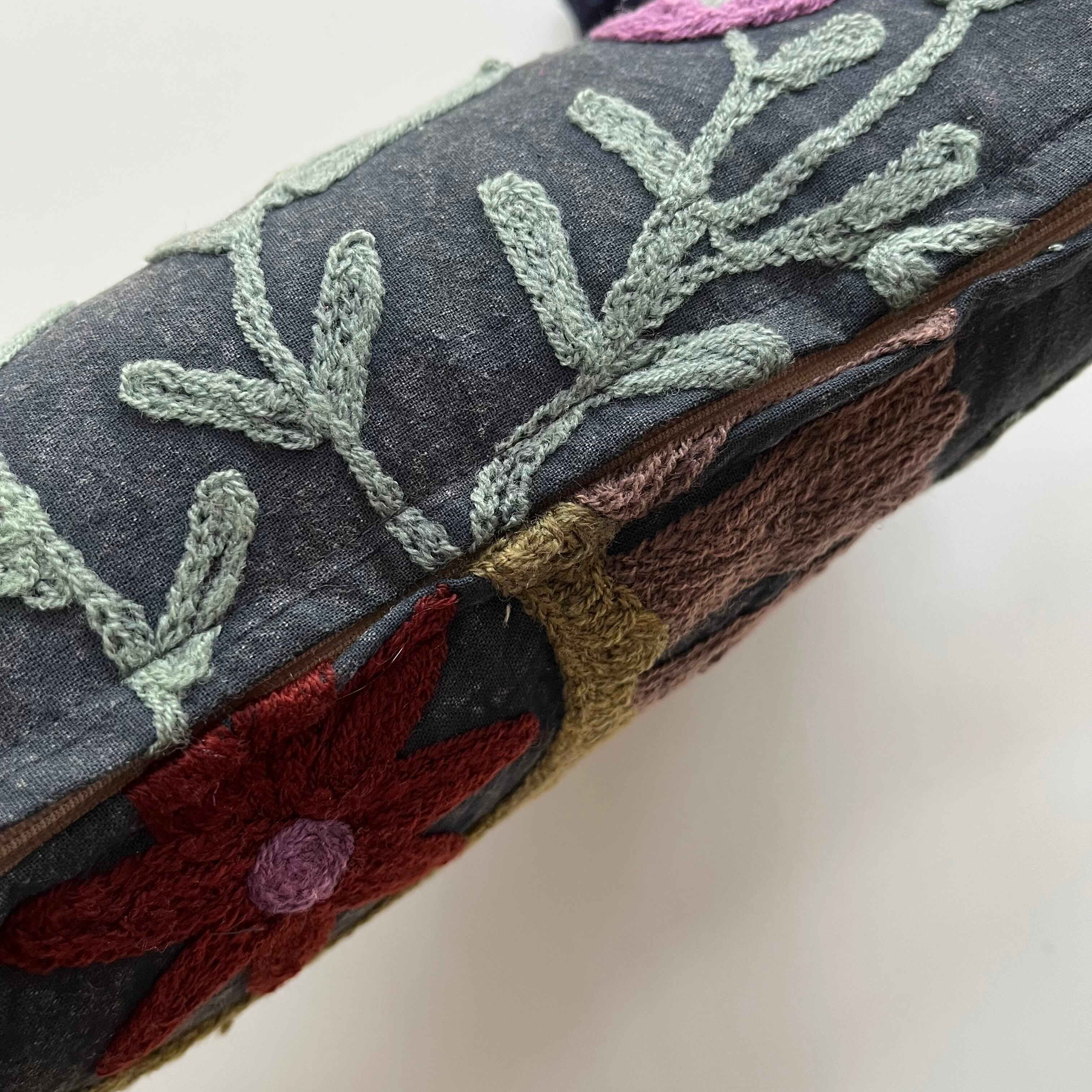 インドで買い付けたスザニ生地ををハリコットのアトリエでクッションに仕立てました。