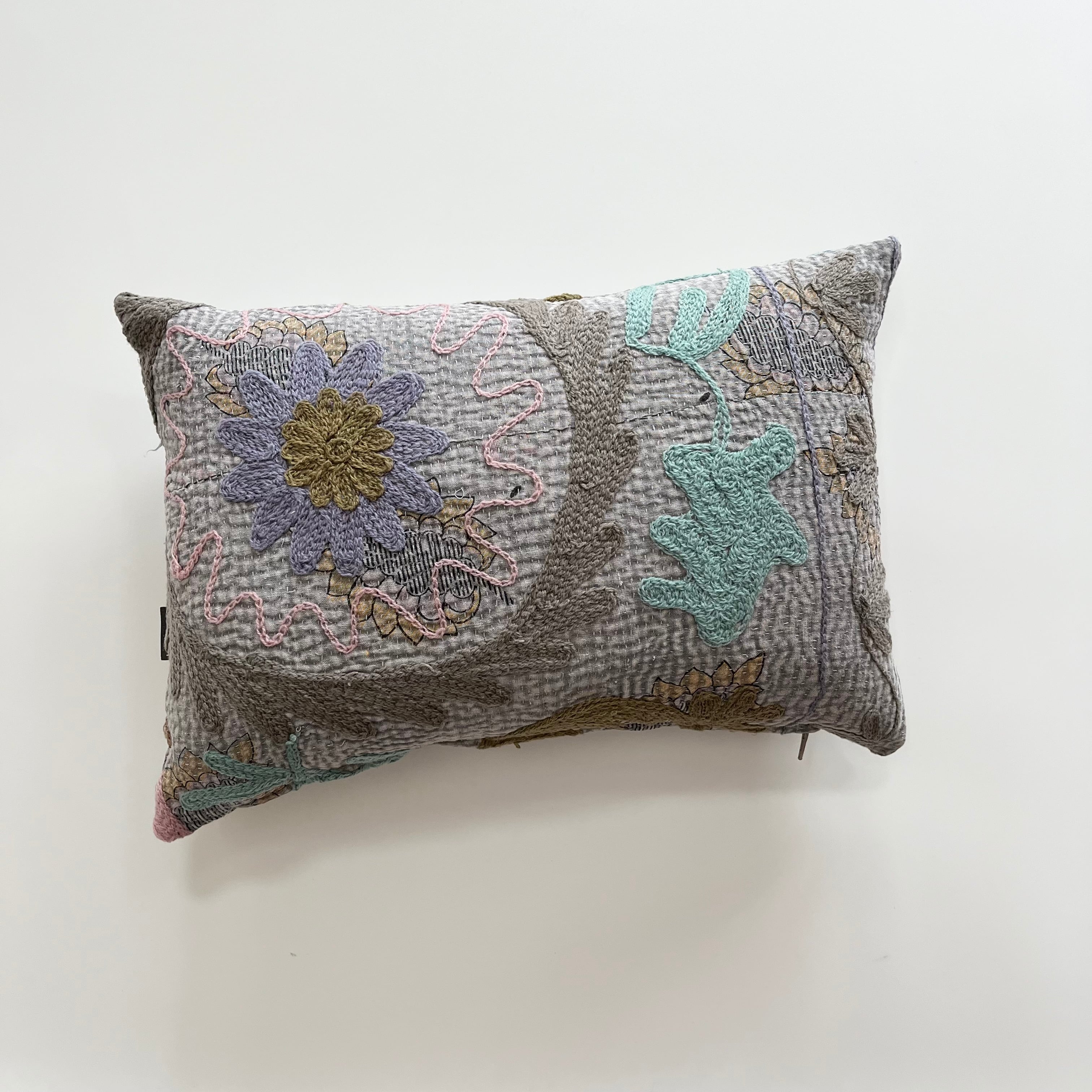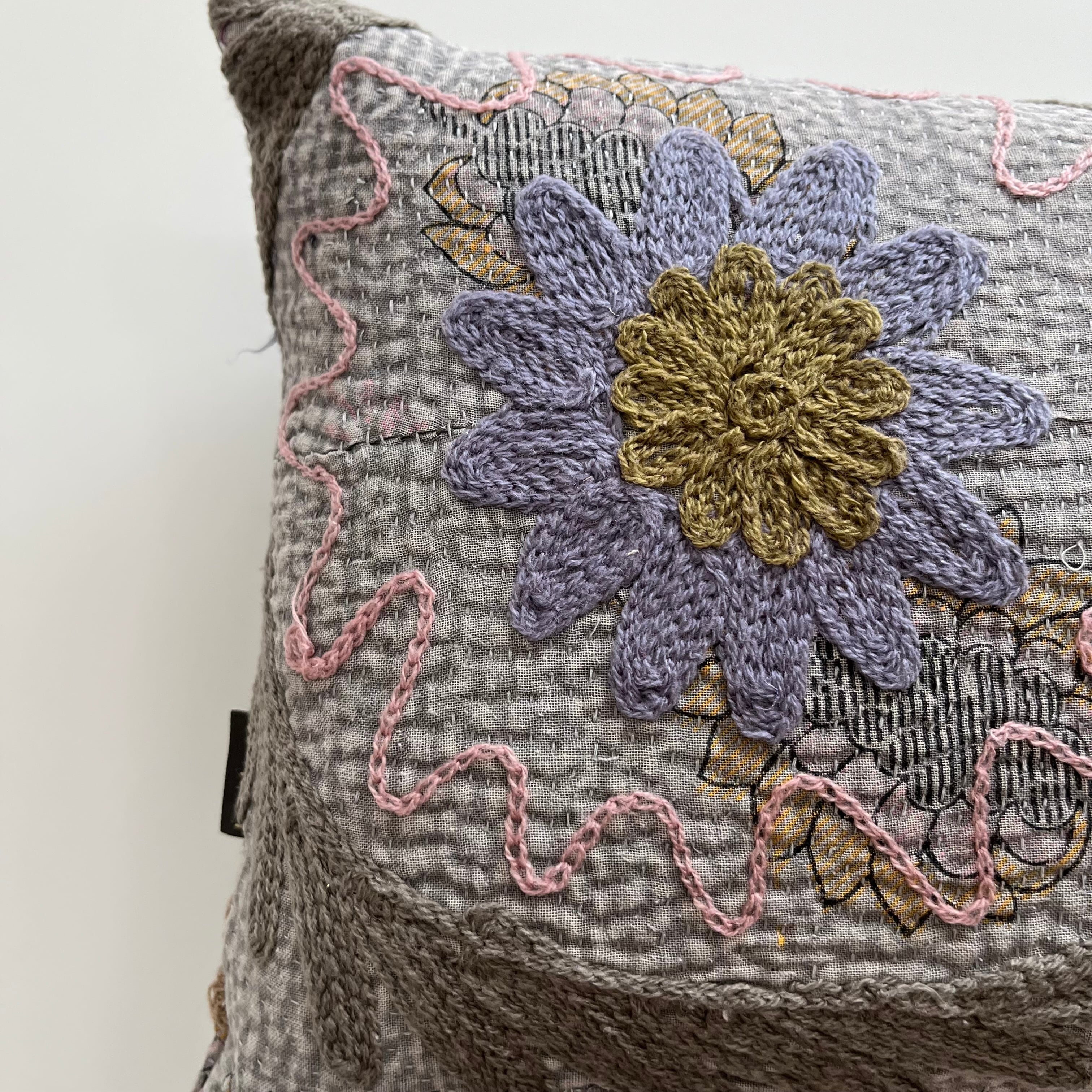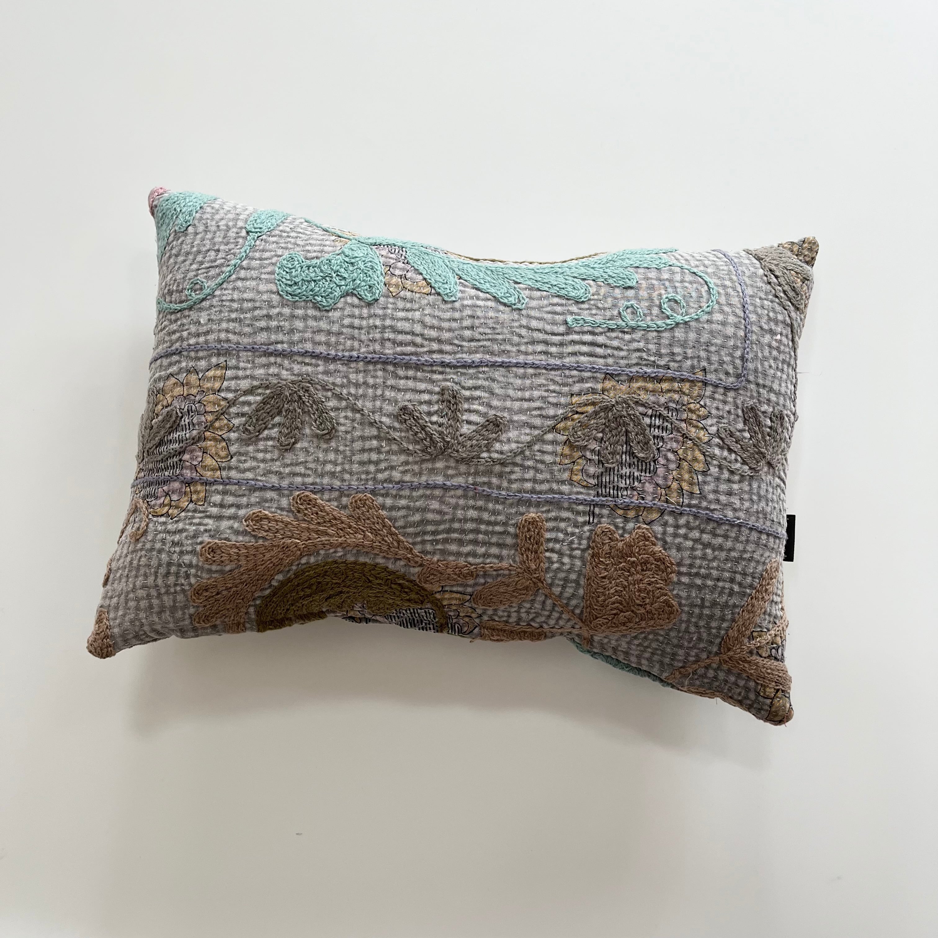 インドで買い付けたヴィンテージラリーキルトをハリコットのアトリエでクッションに仕立てました。