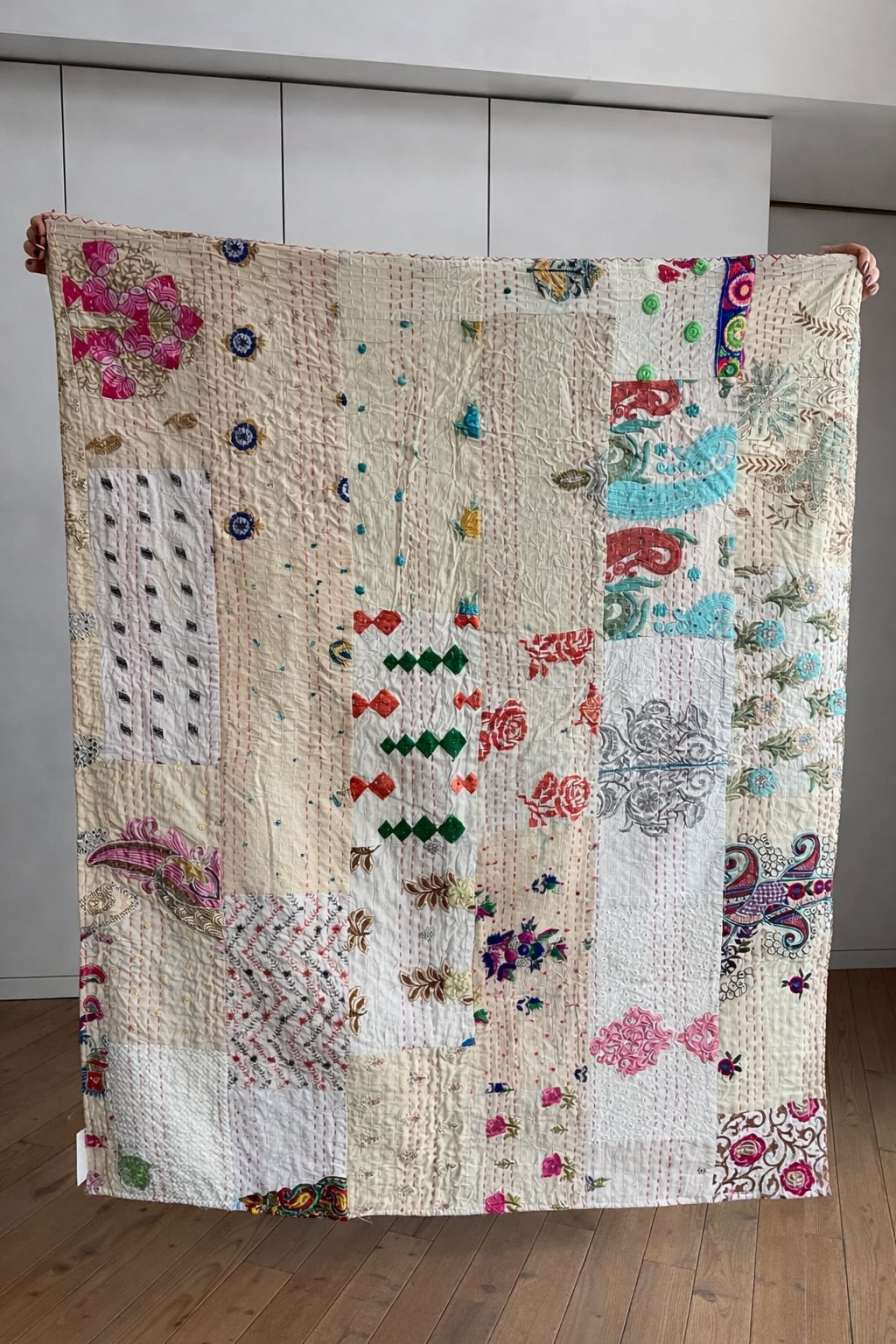 インド製エンブロイダリーパッチワークキルトです。