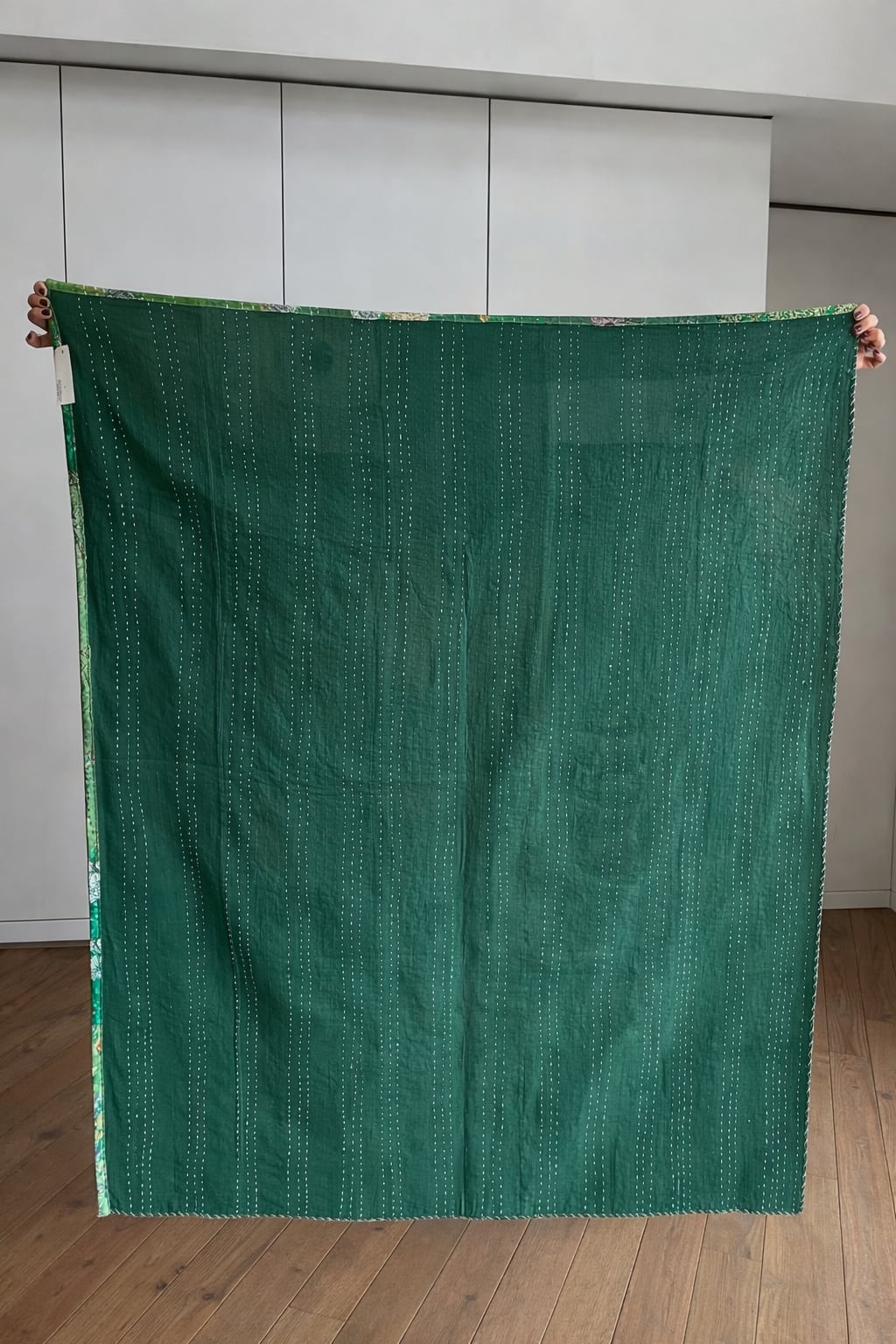 パッチワークキルト膝掛けサイズ グリーンA